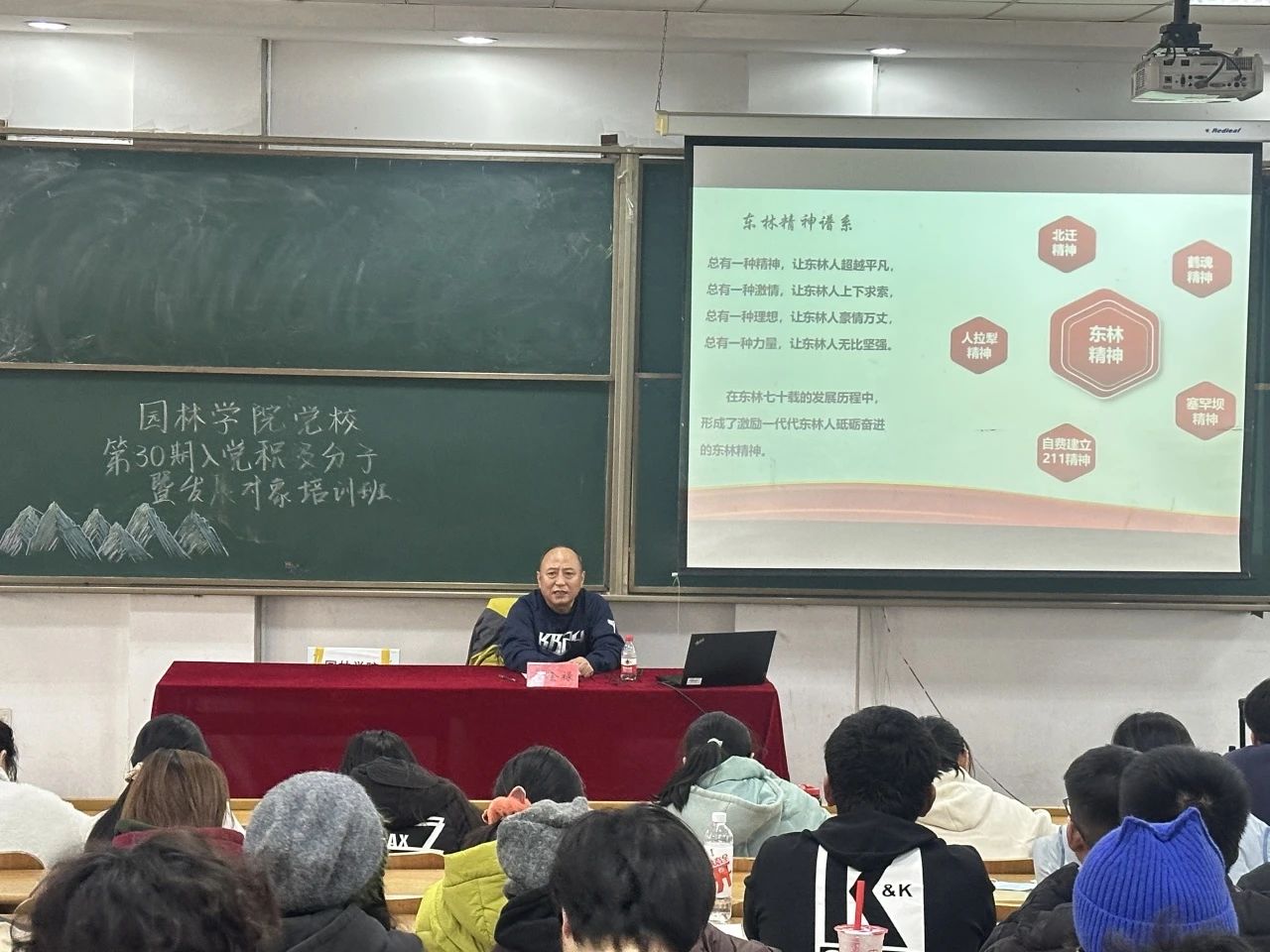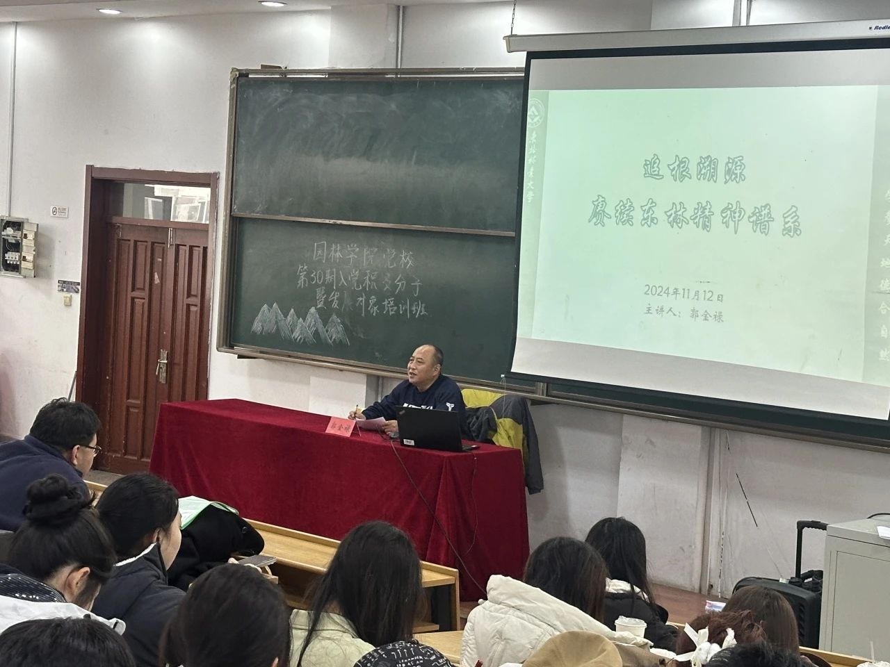 郭金禄老师强调,东林学子要深刻理解东林精神的内涵,争做东林精神的传承者和续写者。他还鼓励同学们要自觉接起接力棒,增强作为一名东林人的志气、骨气、底气,涵养专业情怀、林业情怀、家国情怀,立报国强国大志向,做挺膺担当奋斗者,为中国式现代化建设挥洒青春汗水、贡献智慧力量。