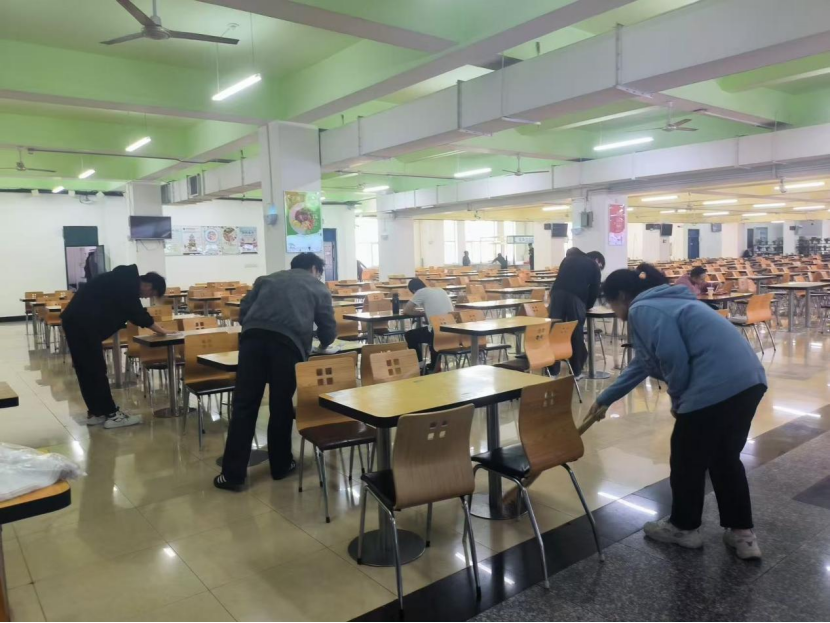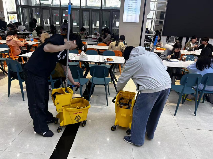 在校内实践活动中,学员于俭德园食堂5个餐厅分工协作,通过擦拭餐桌、清扫地面、清运垃圾等配合食堂工作人员完成餐厅清洁任务。在颐丰园食堂,学员们学习洗碗等基本操作流程,从餐具分类到清洗步骤,每一个环节都专注对待。此次实践,不仅提升了同学们的劳动技能,更让俭德精神在行动中传承。
