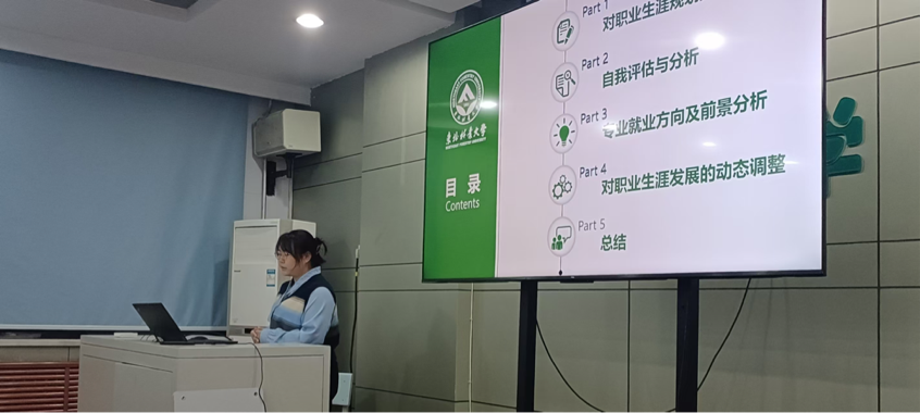 本次大赛以培养职业生涯规划能力为目的,根据不同年级员工的求职规划特点分为“成长赛道”、“就业赛道”两条赛道。主持人介绍了大赛规则后,大赛正式拉开帷幕,选手依次上场,开始进行个人展示。