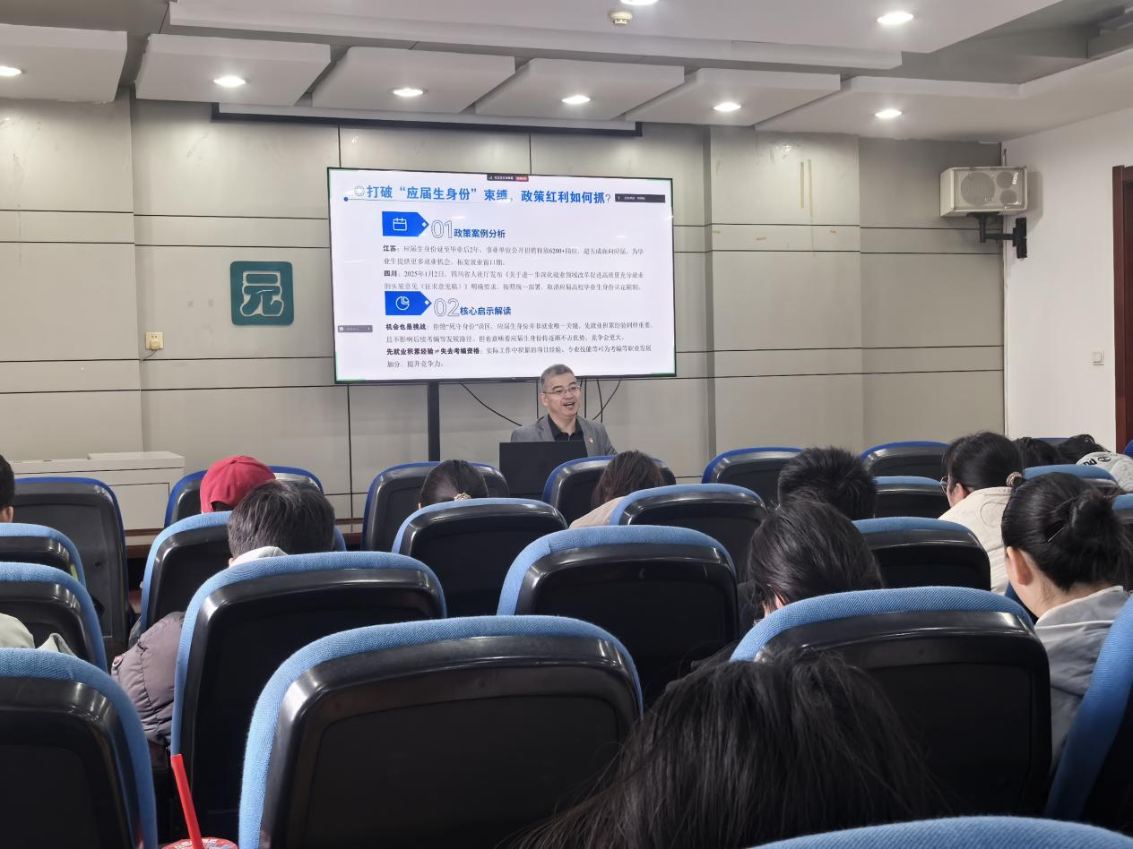 赵书记指出,全国多地已放宽应届生身份限制,为同学们破除误区,鼓励大家“先就业再择业”,呼吁大家摒弃“死守身份”观念,优先积累职场经验。传统行业面临严峻压力,设计院效益持续下行,房地产市场需求明显收缩,致使岗位竞争愈发激烈,赵书记提出六大突围方向“生态修复与碳中和”、“智慧城市与数字孪生”、“文旅与乡村振兴”、“新媒体与品牌策划”、“公共艺术与用户体验”、“教育咨询与培训”,鼓励同学们紧跟国家政策,将个人职业发展与国家需求紧密结合。他强调,面对行业变革,应保持开放心态,勇于尝试新兴领域,不断提升自身专业技能与创新能力,以适应未来职场的多变需求。同时,赵书记还分享了公司近年来在毕业生在新兴领域就业的成功案例,为同学们提供了宝贵的实践参考。