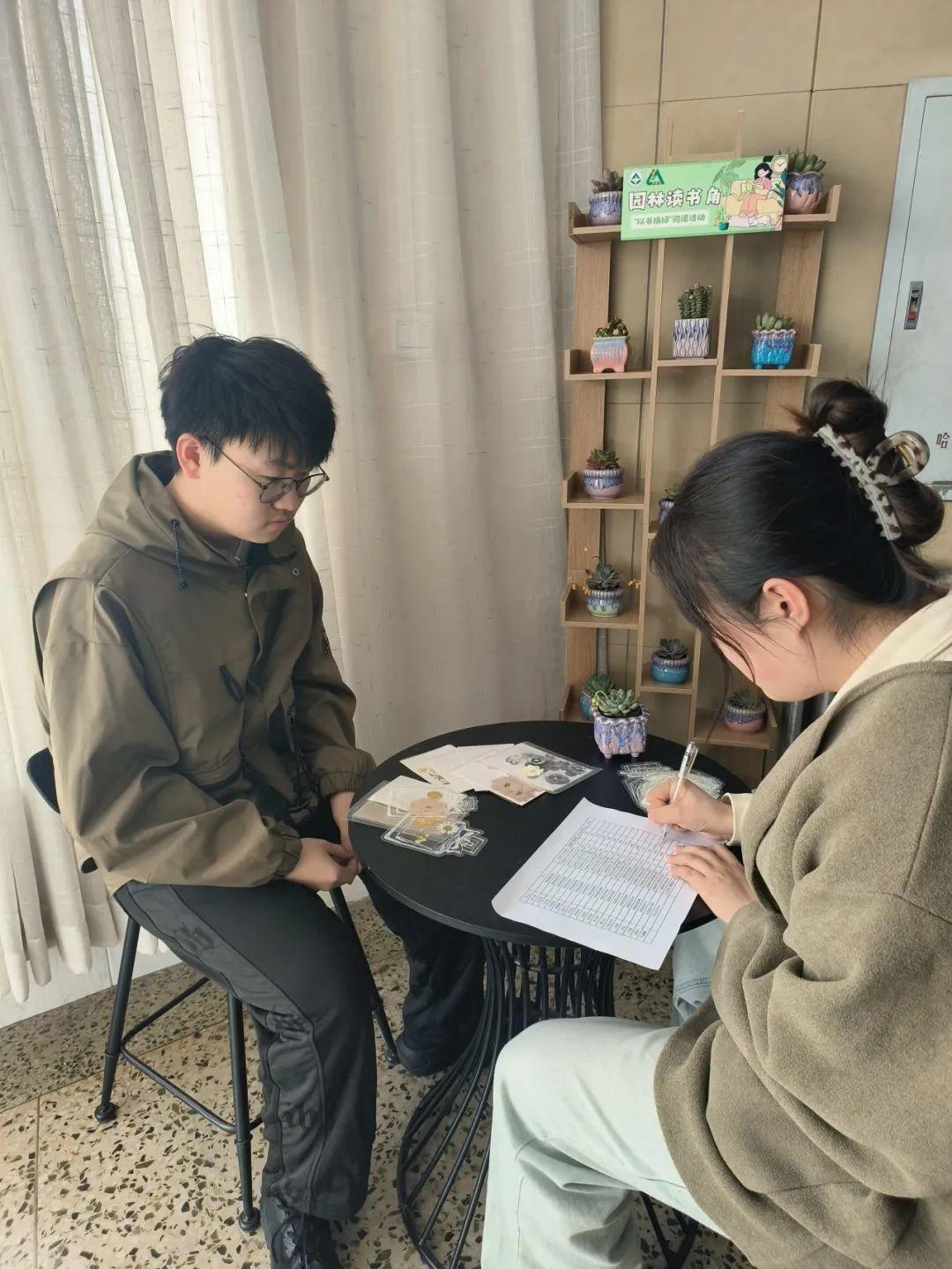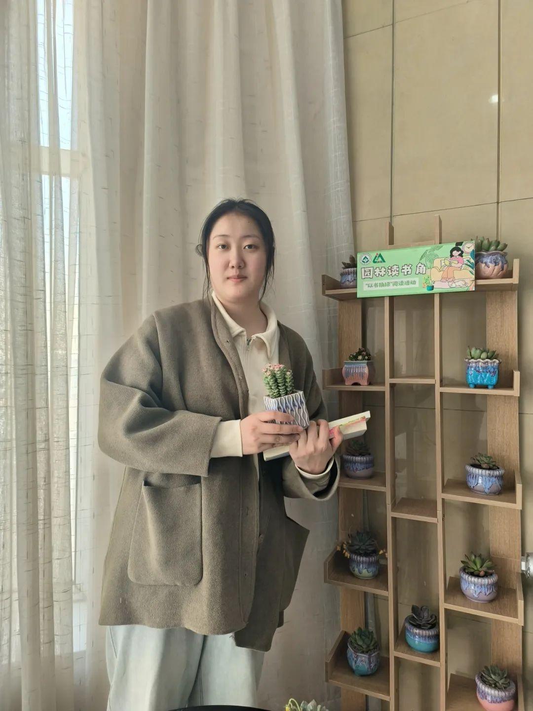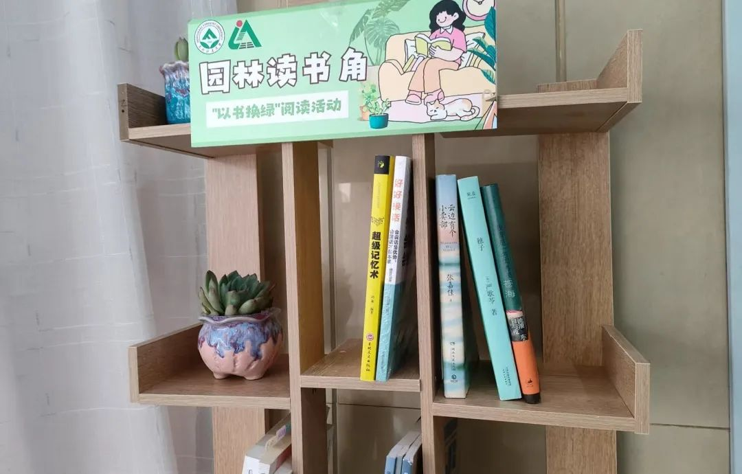 活动期间,园林学子们积极参与,用旧书置换绿植,截至目前已收集到50余本书籍,经过分类整理,与剩余绿植共同打造了一处环境优雅的园林读书角,构建出独特的校园生态阅读空间。