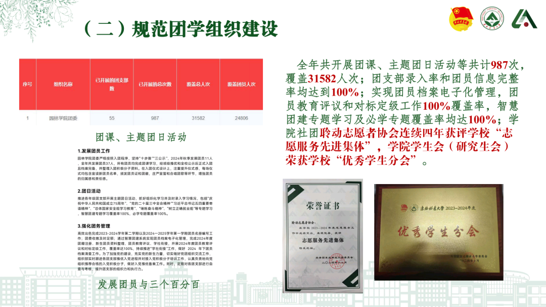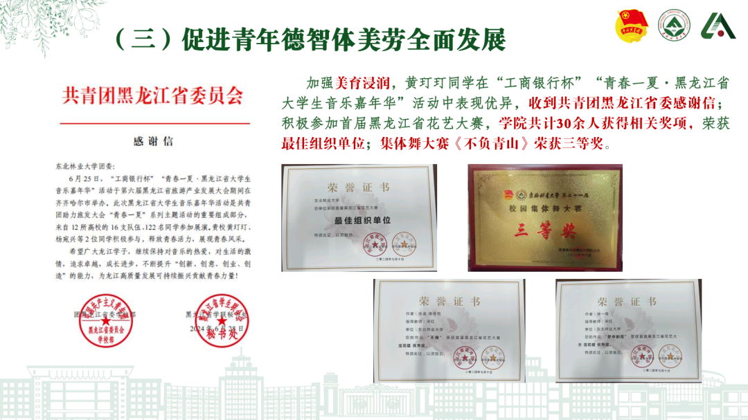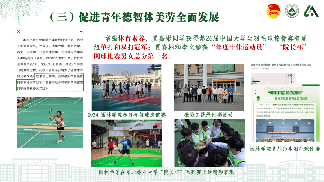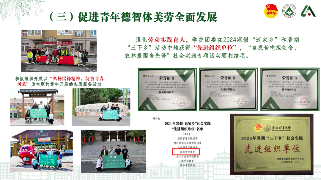 2024年,在公司团委和公司党委的正确指导下,公司团委紧紧围绕公司和公司中心工作,深入学习贯彻落实党的二十大和二十届二中、三中全会精神,以教育思想与高质量发展大讨论、学团组织规范化建设和做好亚冬会志愿服务工作为重点,聚焦引领青年组织青年服务青年,团结带领公司团员青年奋力书写青春园林挺膺担当新篇章。