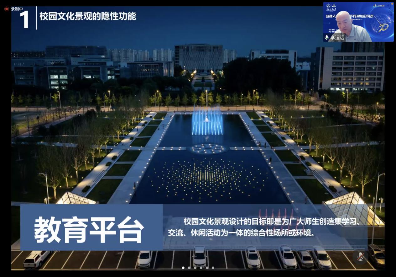 u8国际平台经理王竞红经理热烈欢迎各位师生通过线上会议方式参与此次学术活动报告,并简要介绍了“园林人带你欣赏不同视角的风景”学术活动的内容、流程、以及汇报嘉宾和参与嘉宾。