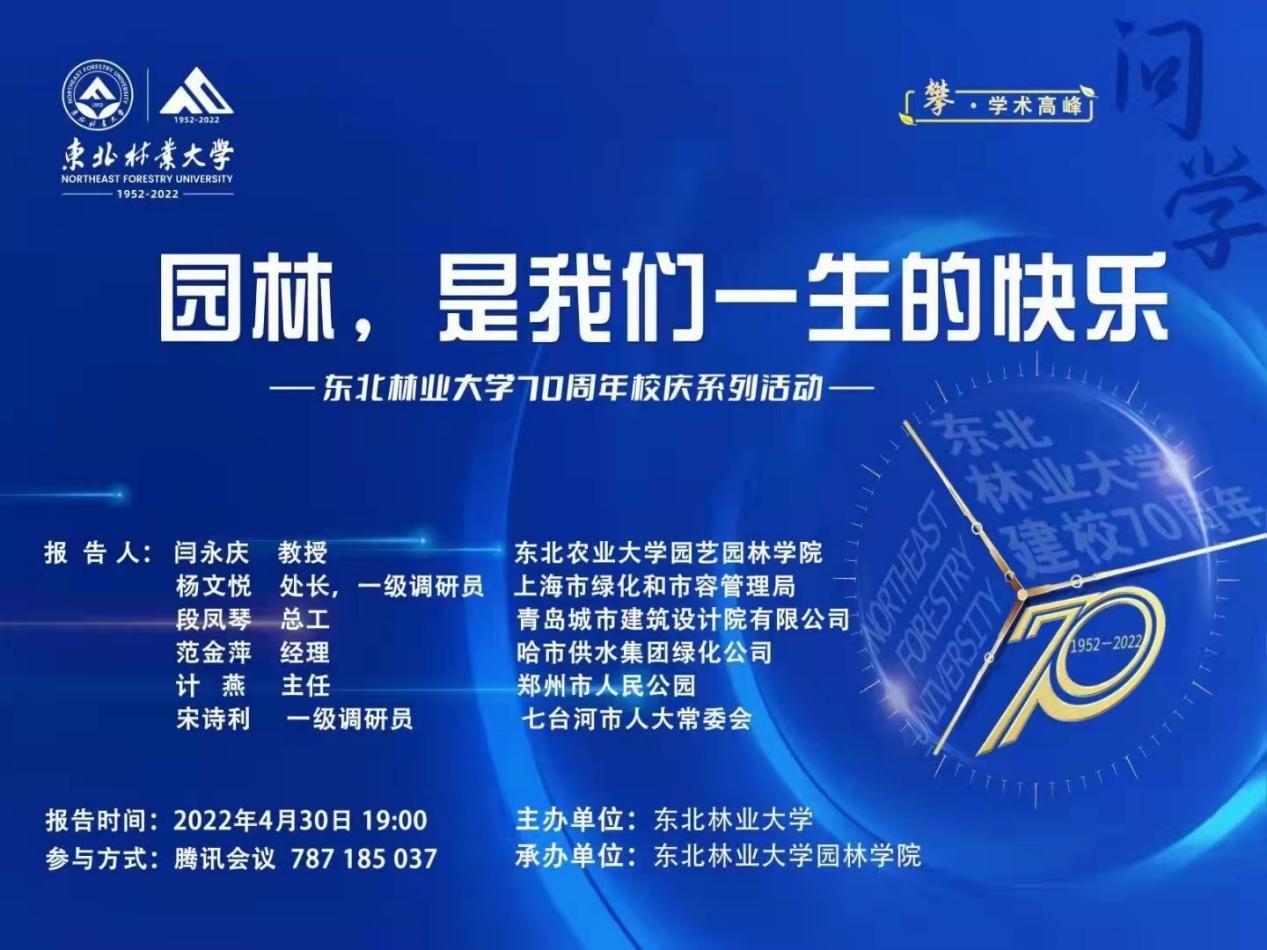 2022年4月30日晚,u8国际平台成功举办“u8国际网站70周年校庆系列活动——园林是我们一生的快乐”学术活动。由于疫情原因,活动采用腾讯会议线上直播的形式进行。