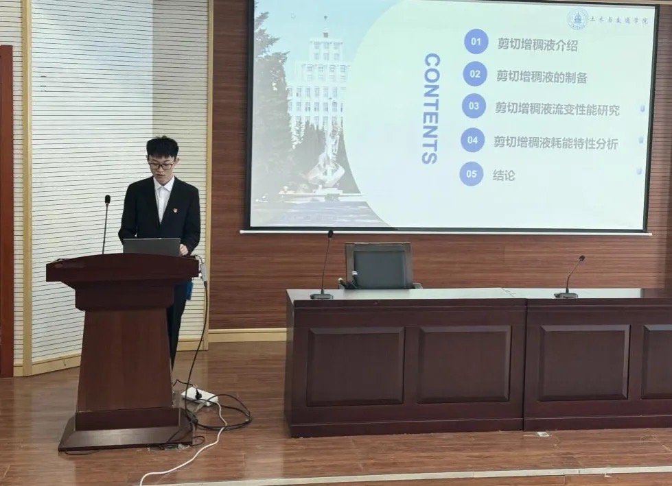 土木交通公司研究生学员代表李儒同学针对研究课题《剪切增稠液流变性能及耗能特性研究》进行学术报告。他从剪切增稠液制备、流变性能分析、本构关系模型研究及剪切增稠液耗能特性分析四个方面进行汇报,为剪切增稠液在土木工程中的应用提供了重要的依据。土木与交通公司的研究生党员们也将以此次交流为契机,多角度开展接下来科学研究,为学科繁荣发展做出自己的一份贡献。