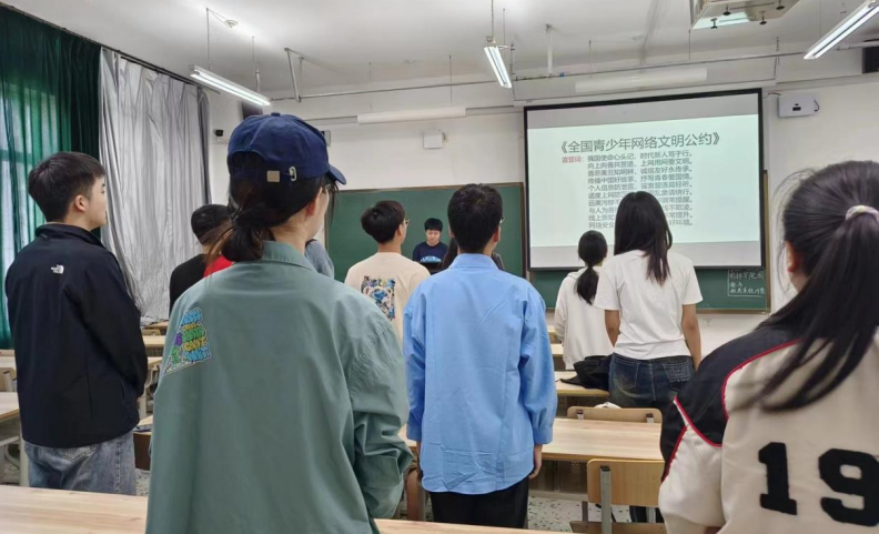 宣讲结束后,开展网络安全宣誓环节。主持人带领大家重温《全国青少年网络文明公约》,呼吁同学们携手维护网络安全秩序,践行网络安全青年力行的承诺。各参会人员进行宣誓,承诺在今后的生活中不断提升学网、懂网、用网能力,做好个人的信息安全保护,做文明的上网者。在之后的签名环节,现场气氛热烈,同学们积极参与,纷纷表示自己有责任,有义务维护网络安全,共建清朗网络。活动的最后,主持人播放的防诈骗宣传片更是发人深省。原本幸福美满的一个家庭因为网络诈骗的不法行为而得支离破碎,高学历的天之骄子失去优渥的现状条件而跌入泥潭,种种不幸令人扼腕,引人深思。网络安全是一个整体的安全,任何一个网络行为的参与者都是安全的主体,而任何一个安全主体的失误都将导致网络的整体受到影响。互联网技术发展的趋势告诉我们,技术的创新是利国利民的,但如果利用不当,也会对他人乃至社会造成负面影响。守护网络安全的落脚点,归根结底还是在我们。